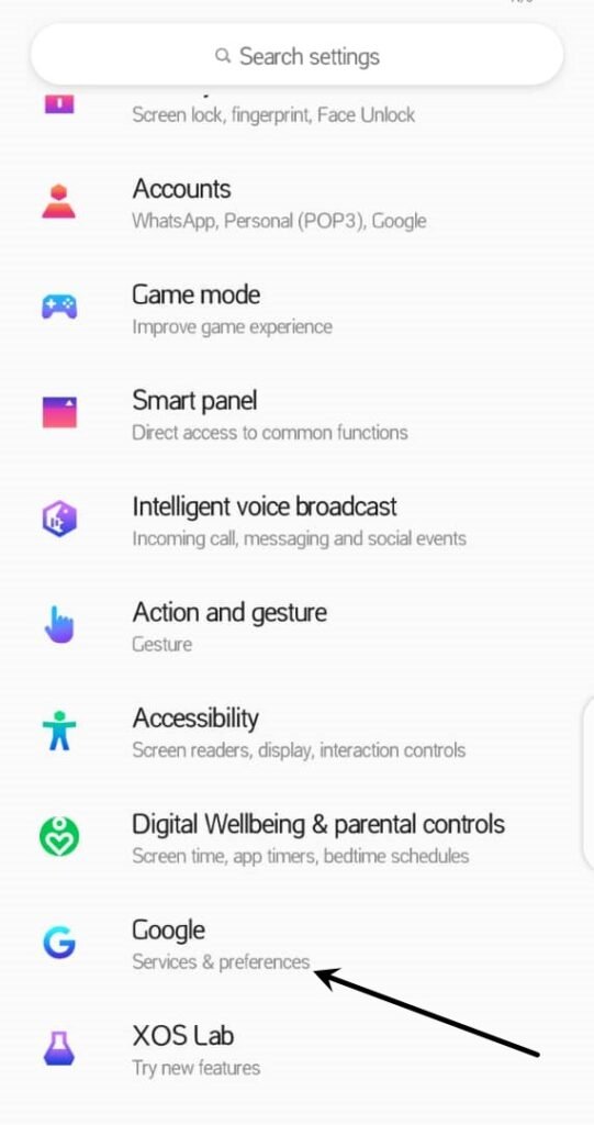 - Locate Google (Services and preferences)