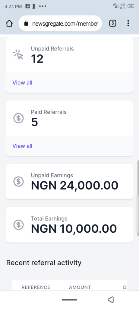 Aside from dCoins, you will be rewarded with referral earnings for every single person you invite to Newsgregate. If the person you invited becomes a member, you will be rewarded with N1,500 and there is no limit to the number of people you can invite.